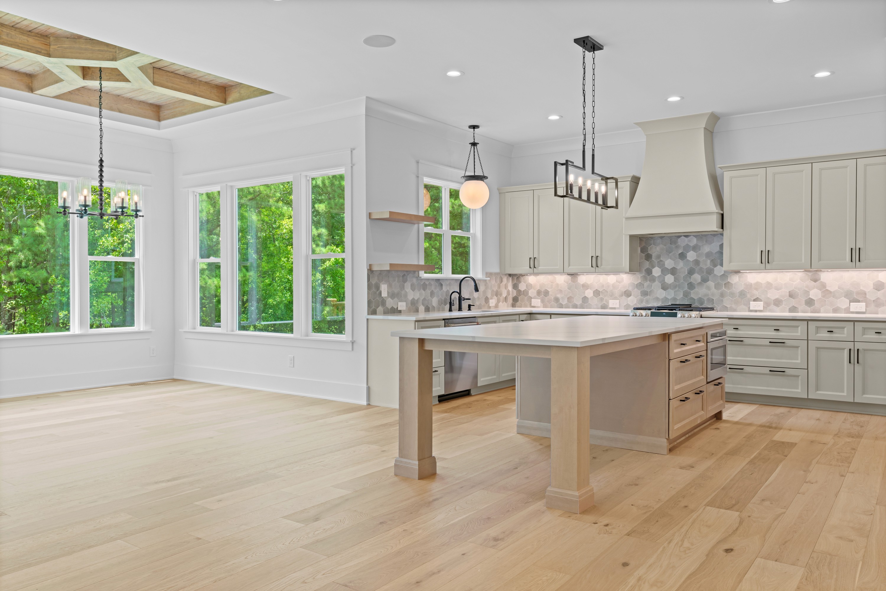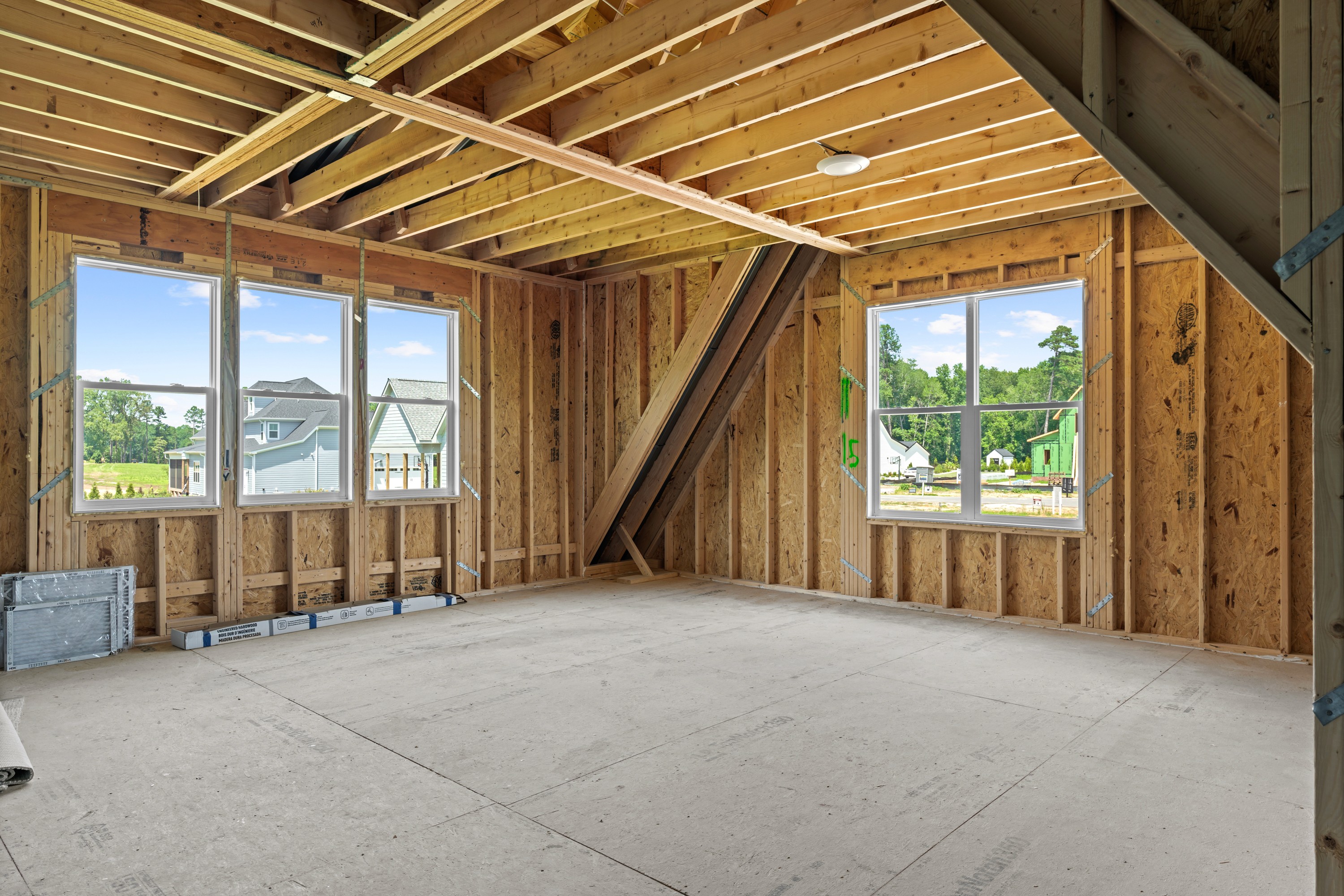 This custom-built masterpiece combines refined design with thoughtful craftsmanship, offering the kind of elegance that feels straight from a Restoration Hardware showcase. Situated on a sprawling, professionally landscaped .69 acre lot with Bermuda sod and dramatic landscape lighting, the property balances sophistication with everyday livability. Step inside this 2025 built home to discover 7.5'' engineered wire-brushed white oak floors, soaring 10' ceilings with 11' in the family room, and 8' doors throughout the first floor. A stunning dining room features a unique wood coffered tray ceiling, while the family room centers around a Napoleon 42'' LP gas fireplace. The Café appliance package, highlighted by a 30'' dual fuel double oven range, anchors the chef's kitchen, where quartz countertops, custom soft-close cabinetry with dovetail drawers, and reverse osmosis filtration elevate daily living. The first-floor owner's suite is a spa-like retreat with a super shower, tray ceiling, and luxurious finishes. Additional highlights include a first-floor office with custom cabinetry, a mudroom, bonus room, and expansive attic storage. This home is built with quality at every turn: 30-year architectural shingles, 6'' gutters with oversized downspouts, upgraded CPVC plumbing supply lines, a panel block septic system, and a private well (approx. 20 gpm). Enjoy the advantages of an owned propane tank, custom low-voltage kiosk with speakers in multiple rooms, and prewiring throughout for seamless tech integration. All this with no city taxes and no HOA, just minutes from the heart of Wake Forest.